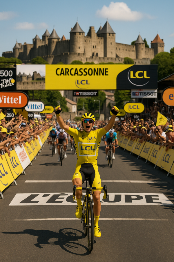 20/07 | La route de Carcassonne, c’est pas une promenade digestive après le cassoulet ! En général, ça sourit aux sprinteurs qui ont encore un peu de jus dans les mollets, mais avec 2 400 mètres de grimpette en moins de 170 bornes, y’a moyen que les baroudeurs à moustache se fassent la malle.Faut dire que la côte de Saint-Ferréol, en passant par Revel (et pas Réveil hein, parce que là t’es(…) | |