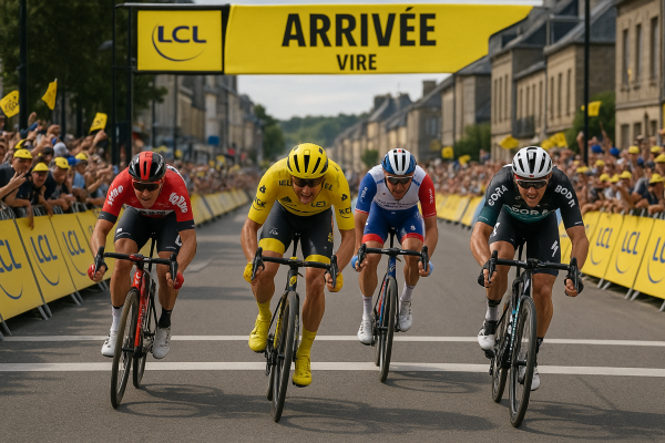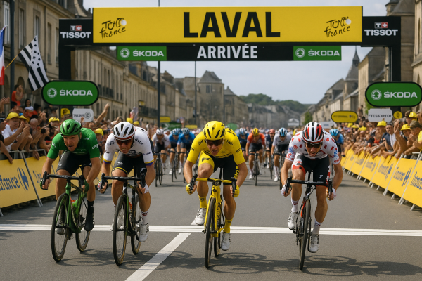12/07 | Une étape taillée pour les gros mollets, pas pour les grimpeurs !Aujourd’hui, c’est la vraie étape des routiers-puncheurs. On quitte la Bretagne (avec une petite larme à l’œil et un kouign-amann dans la poche) pour filer vers la Mayenne, pépouze, sur des routes bien planquées du vent — du moins si Éole décide de faire la sieste.Les équipes de sprinteurs ont sorti les gros bras et vont cadenasser la course(…) | |